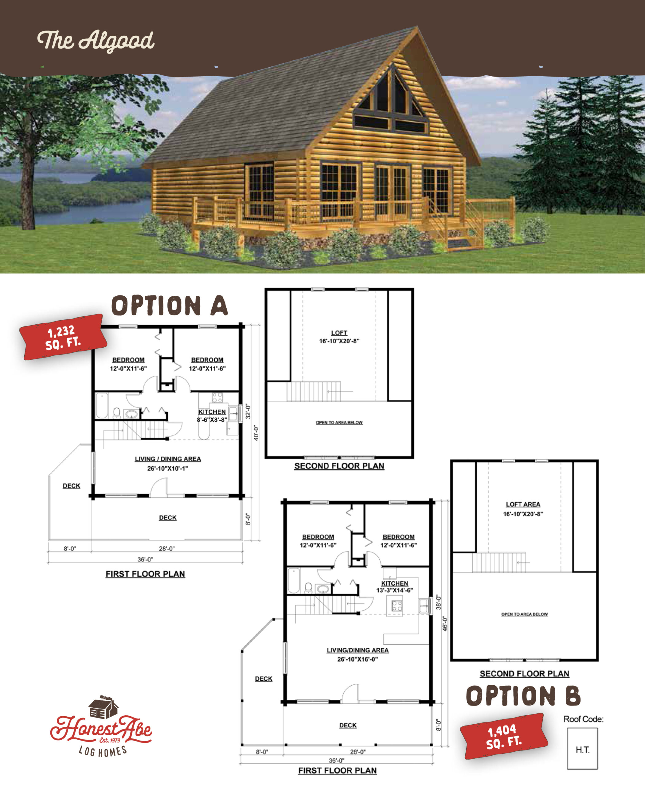 Square Footage: Option A: 1,232 Option B: 1,404 Two Story
