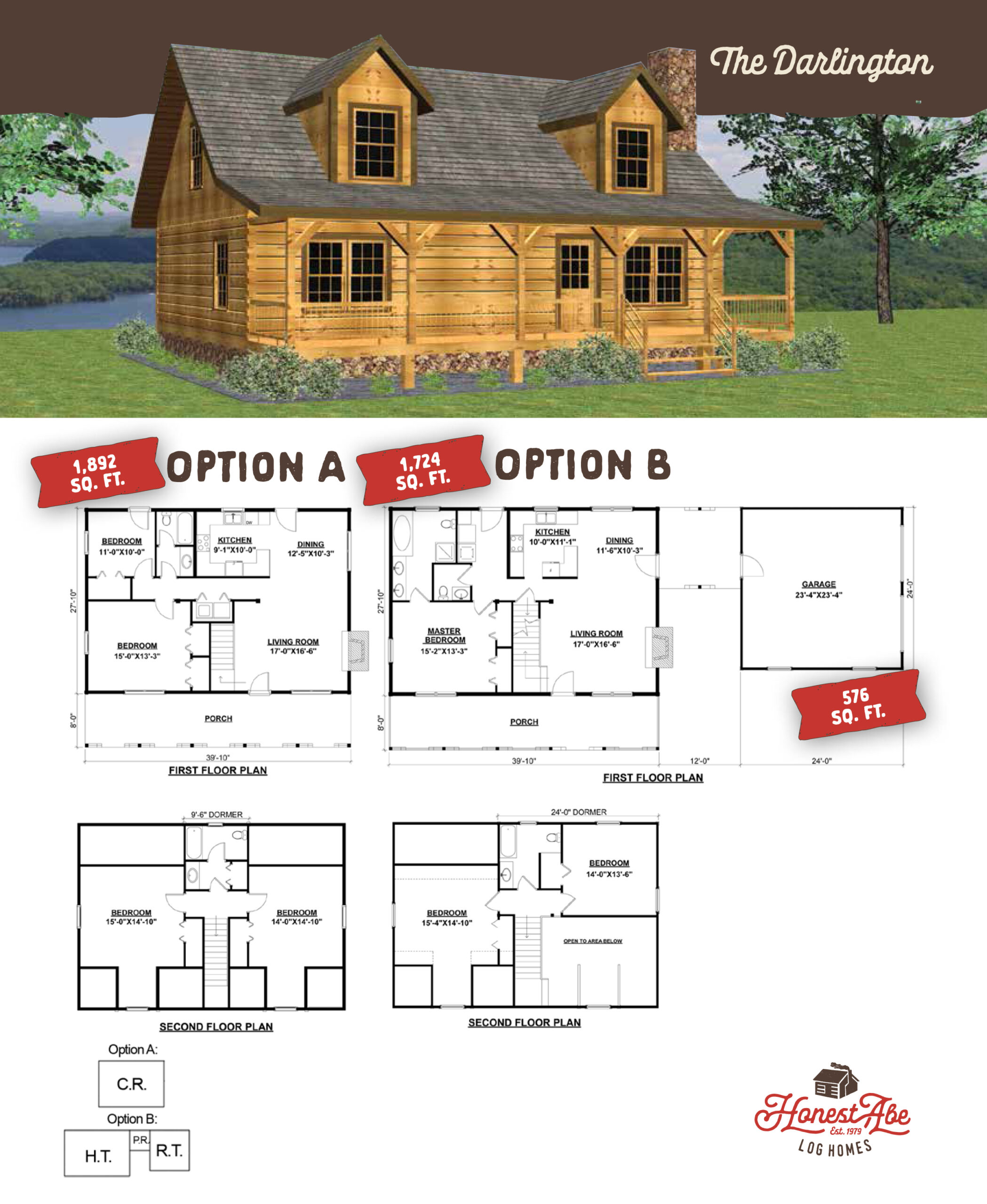 Square Footage: Option A: 1,892 Option B: 1,724 Two Story
