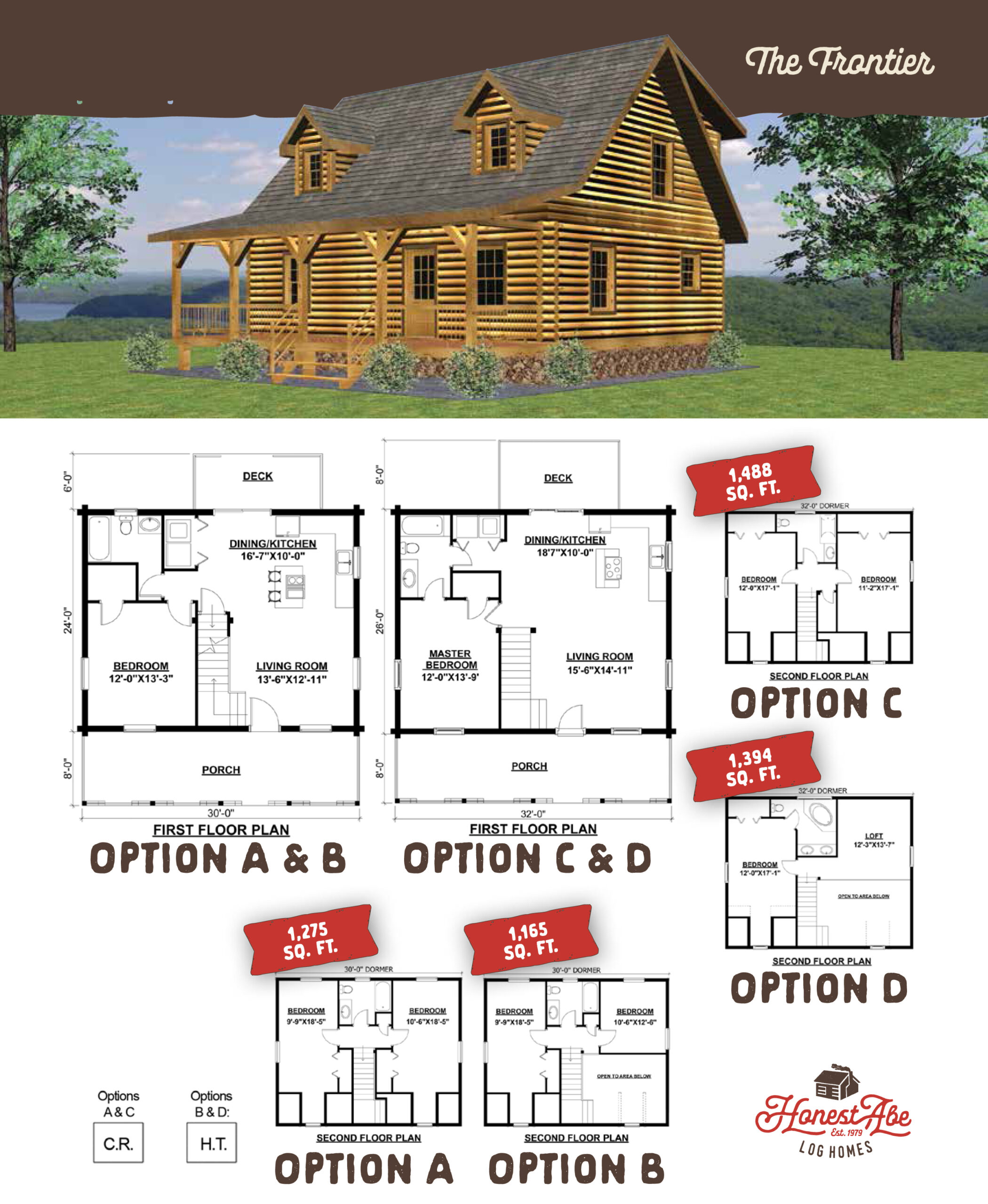 Square Footage: Option A: 1,275 Option B: 1,165 Option C: 1,488 Option D: 1,394 Two Story